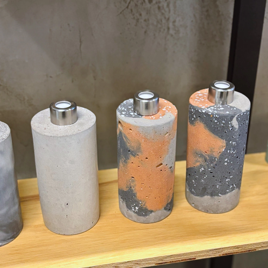 Recipiente para difusor de aromas tem o corpo em concreto, formato cilíndrico e tampa com acabamento metálico escovado. Peça com design minimalista confere um toque contemporâneo e industrial! Escolha seu aroma favorito para marcar o seu ambiente.